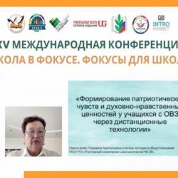 В качестве наставника учитель истории и обществознания нашей школы Омельченко Людмила Анатольевна поделилась методическими находками, эффективными технологиями и практикой по формированию патриотических чувств и духовно-нравственных ценностей учащихся через дистанционные технологии на XV международной конференции «Школ