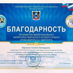 Подводим итоги межрегионального литературно-творческого сетевого проекта «Уроки Доброты К.Д. Ушинского», который прошел 07.11.2023 - 31.01.2024 под кураторством минобразования РО и посвящен празднованию 200-летия со Дня рождения великого педагога Константина Дмитриевича Ушинского.