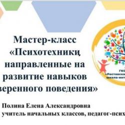 18 октября 2023 г. в рамках регионального полуфинала профессионального конкурса "Флагманы образования" Полина Елена Александровна, учитель нашей школы, провела мастер-класс "Психотехники, направленные на развитие навыков уверенного поведения" для полуфиналистов конкурса.