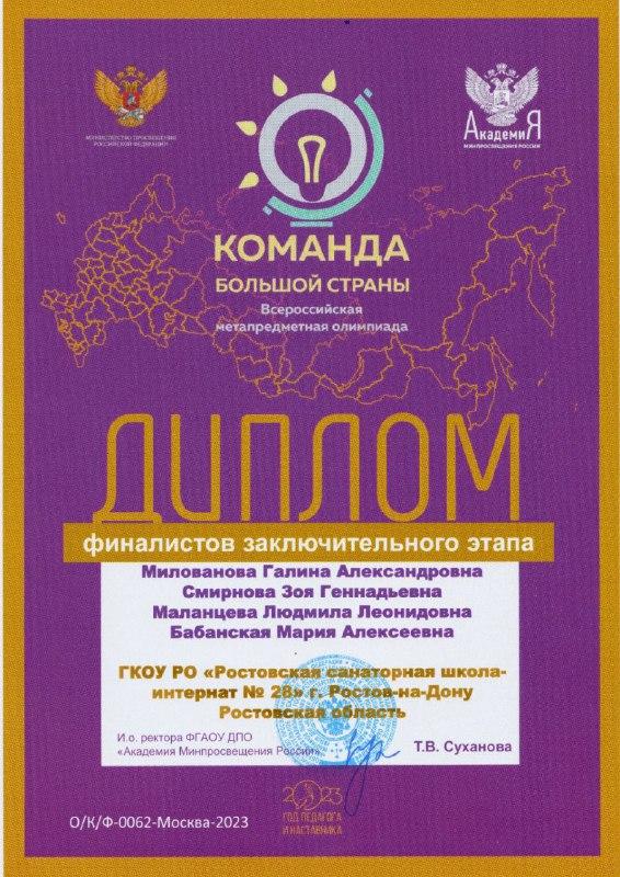 Команда педагогов «Школа 28 Ростов-на-Дону» стала победителем регионального и финалистом заключительного этапов Всероссийской метапредметной олимпиады «Команда большой страны» в Москве.