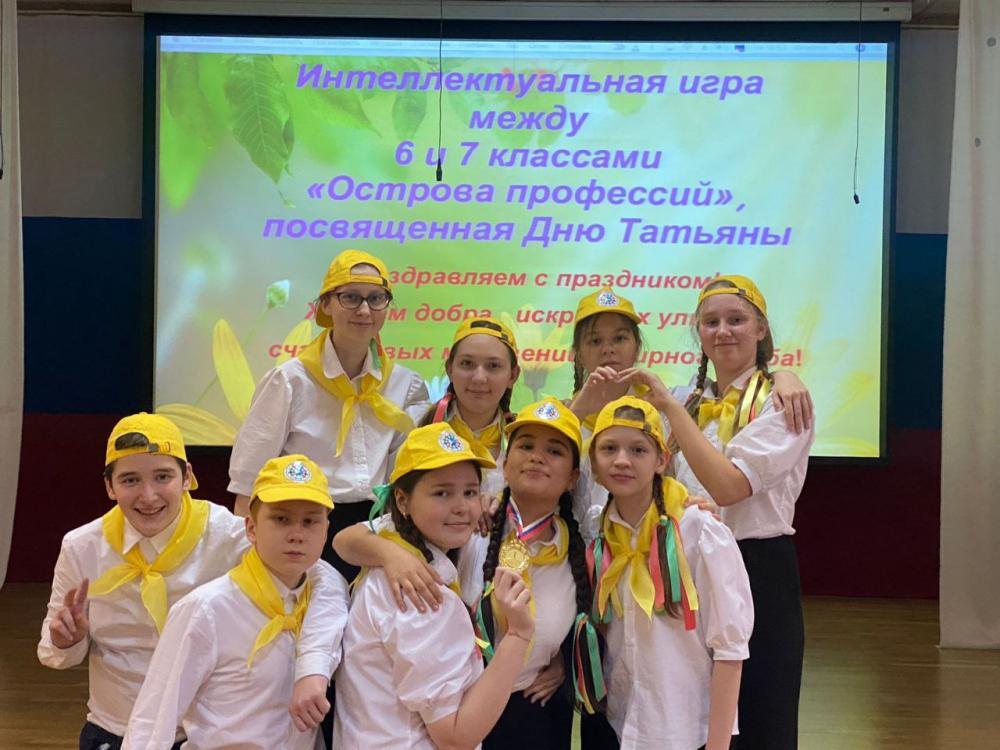 Команды " Интернет" и " Позитив" учащихся 6 и 7 классов провели интеллектуальную игру, посвященную Дню Татьяны и Дню студента под названием" Острова профессий".