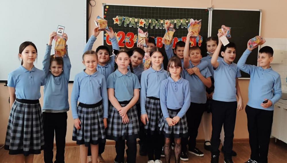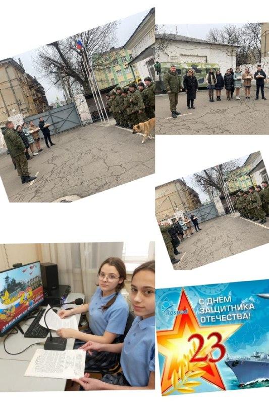 Сегодня, в предверии праздника, 23 февраля - Дня Защитника Отечества, наша школа организовала поздравление для военнослужащих подшефной воинской части. Ребята с радостью вручили им сладкие подарки и пожелали всего наилучшего. Это было очень трогательно и важно для нас,  мы  выразили свою благодарность и уважение к тем, кто защищает нашу страну и стоит на страже Мира!