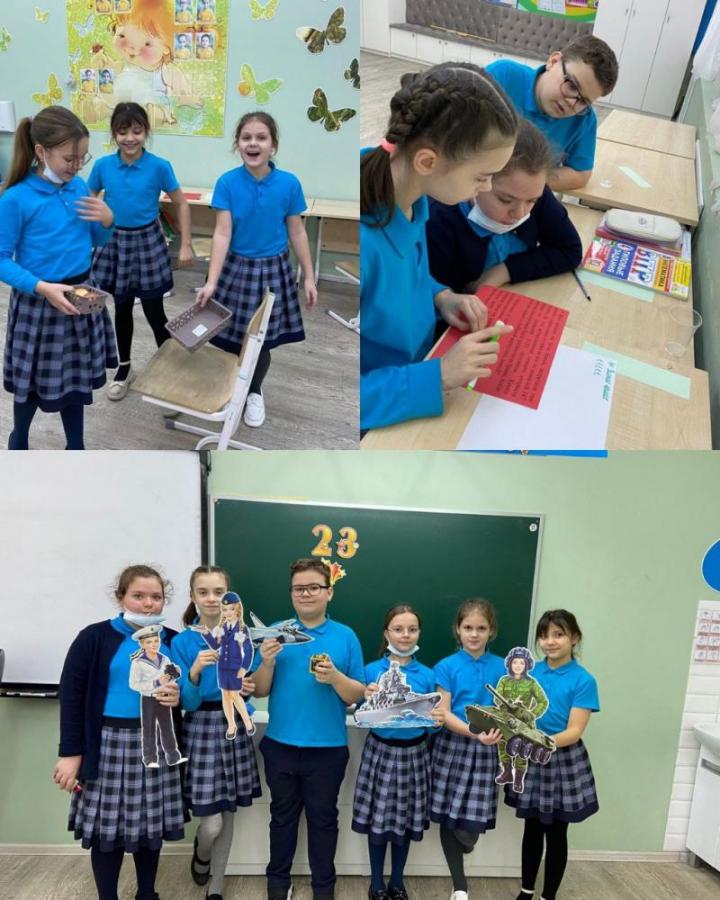 Также, сегодня  прошли праздничные мероприятия по классам, посвященные теме защиты Отечества и патриотизма. Мы обсуждали важность службы в армии и рассказали о героических подвигах наших защитников.