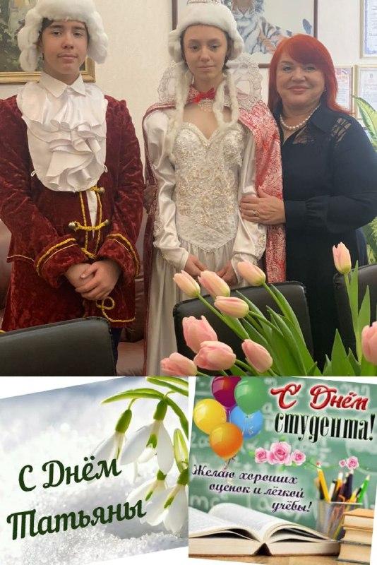 Поздравляем всех девочек, девушек, женщин с прекрасным именем Татьяна с этим замечательным праздником! И конечно, нашу самую Главную Татьяну - нашу прекрасную Татьяну Леонидовну - нашего директора! Пусть Ангел Хранитель всегда будет за спиной и помогает в любых трудностях! Также, поздравляем тех, кто имеет отношение к образованию - с Днем студента! Желаем выполнения всех задач, преодоления трудностей, везения, удачи и легкой учебы! Пусть это время будет самым запоминающимся и веселым! Мечтайте и воплощайте мечты в реальность!