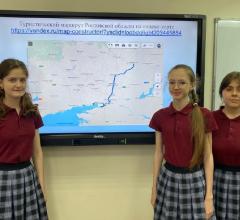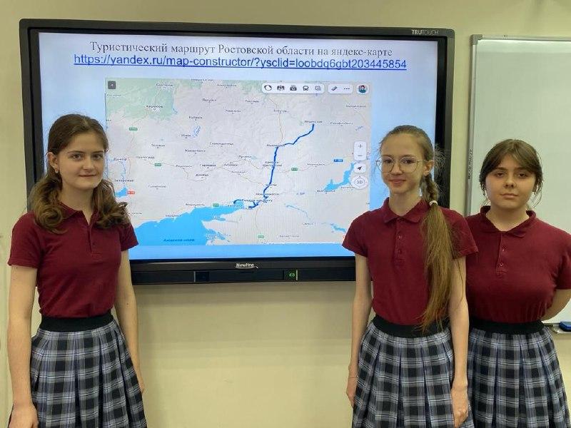 Учащиеся 9 класса Зданевич Ксения, Матковская Виктория и Гвозденко Ксения под руководством педагога Турбановой Надежды Александровны приняли участие в заочном этапе Всероссийского конкурса "Туристический код моего города, посёлка, района - ПРО-туризм", на которую представили работу "Путешествие по Ростовской области. Туристический маршрут в Яндекс-картах" в номинации "Экскурсионный туризм".